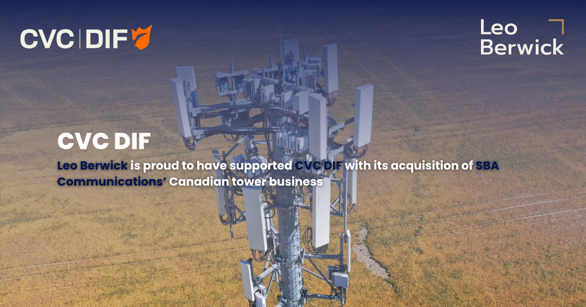 Leo Berwick is proud to have supported CVC DIF with its acquisition of SBA Communications’ Canadian tower business, a leading wireless tower infrastructure platform in Canada.