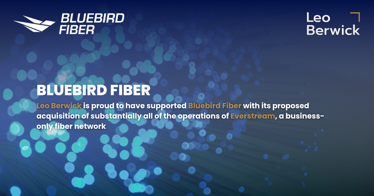Leo Berwick is proud to have supported Bluebird Fiber with its proposed acquisition of substantially all of the operations of Everstream, a business-only fiber network.