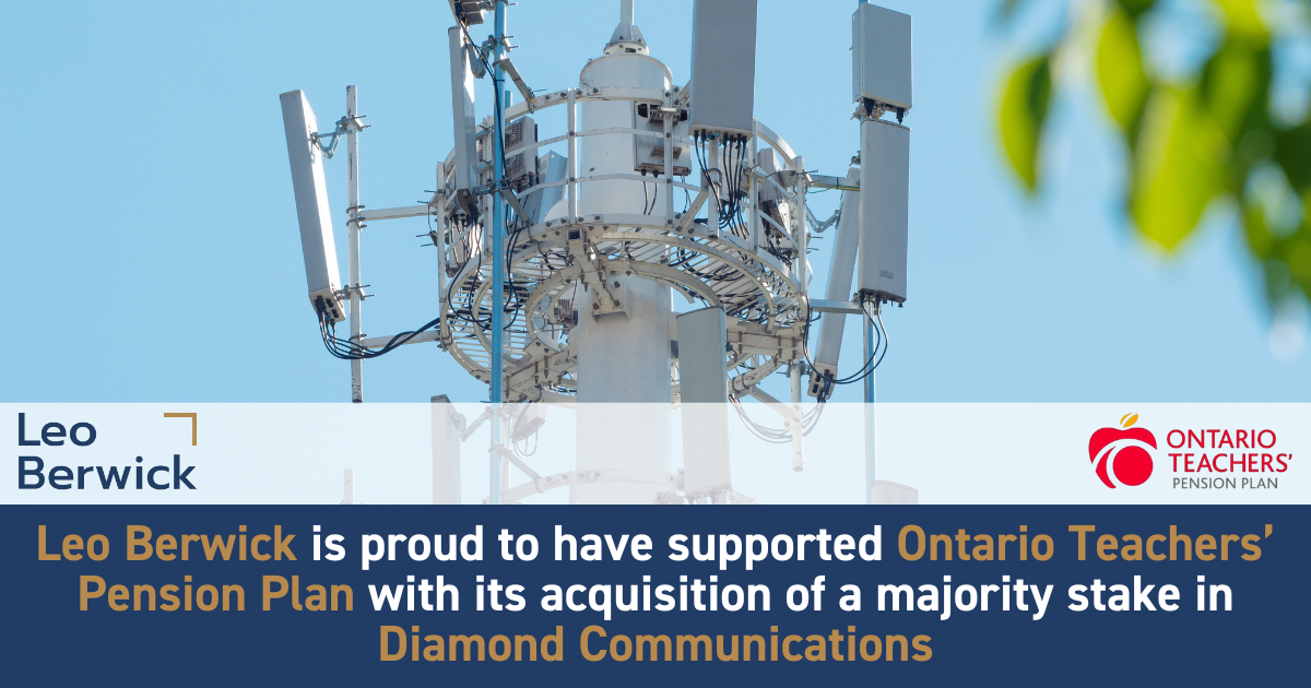 Leo Berwick is proud to have assisted Ontario Teachers’ Pension Plan with its acquisition of a significant equity ownership position in Diamond Communications, one of the largest privately held U.S. wireless communications infrastructure platforms, joining its existing institutional investors, including Sculptor Capital Management Real Estate and Manulife Investment Management.