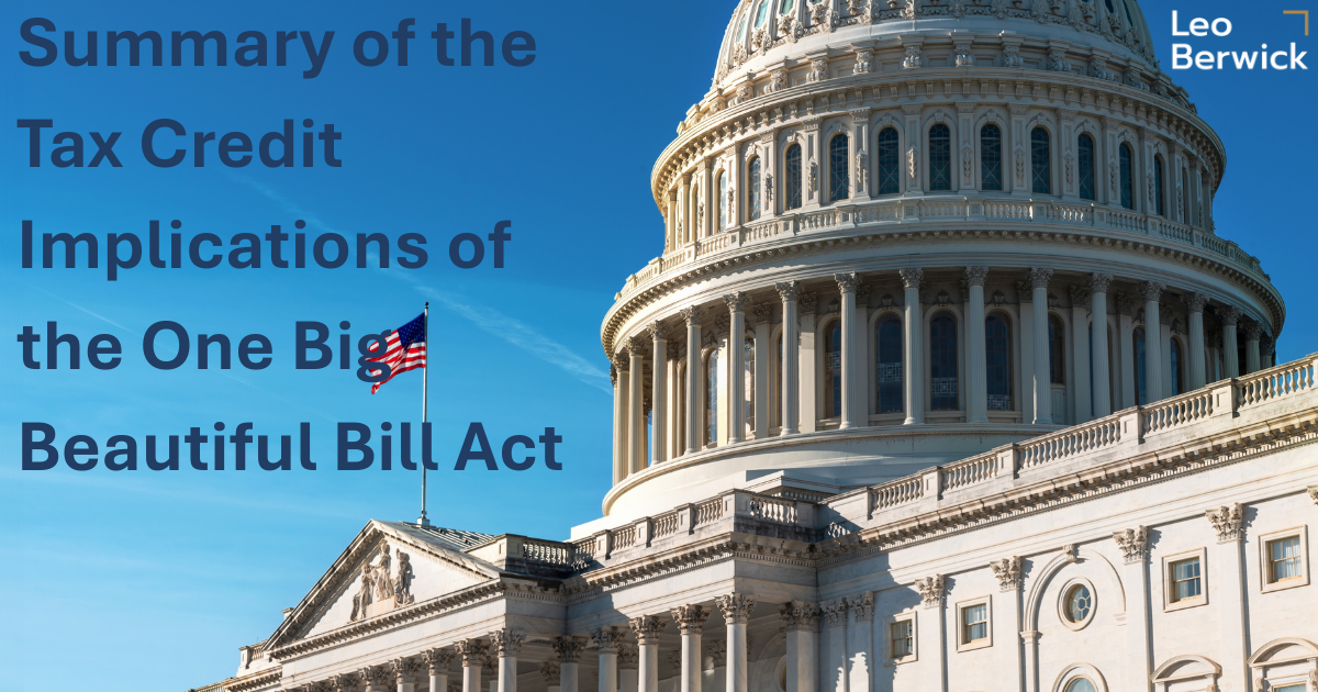 In summary, the federal credit landscape for a wide array of asset classes will shift under the OBBBA. Please reach out to a Leo Berwick professional to discuss how we can assist navigating changing circumstances.