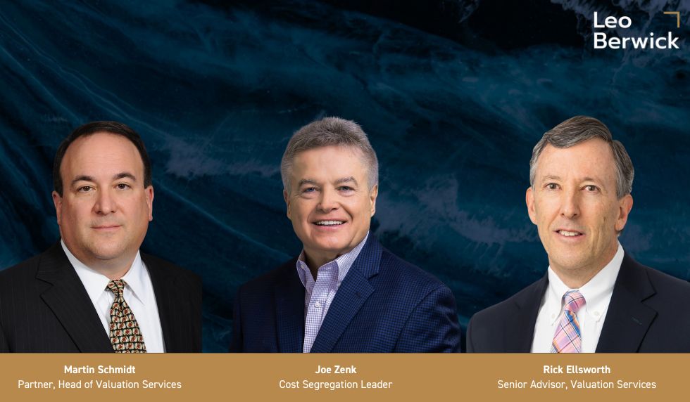 Leo Berwick, a dedicated deal advisory firm, today announces the establishment of a premiere tax-sophisticated, client-focused renewable energy Valuation and Cost Segregation services practice, thereby fully integrating exceptional valuation, cost segregation, and tax expertise under one unparalleled roof. To lead this practice, Martin Schmidt has been appointed Partner – Valuations leader. In this role, he will work closely with Joe Zenk, Cost Segregation leader, and Rick Ellsworth, Senior Advisor – Valuations.